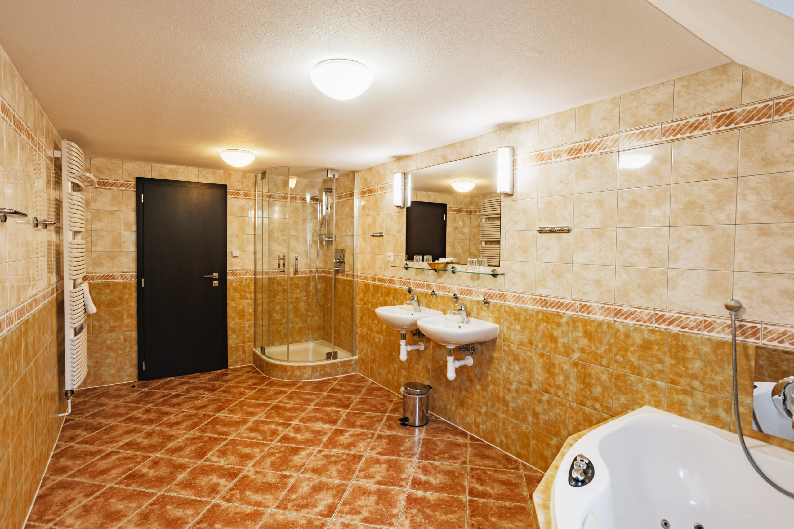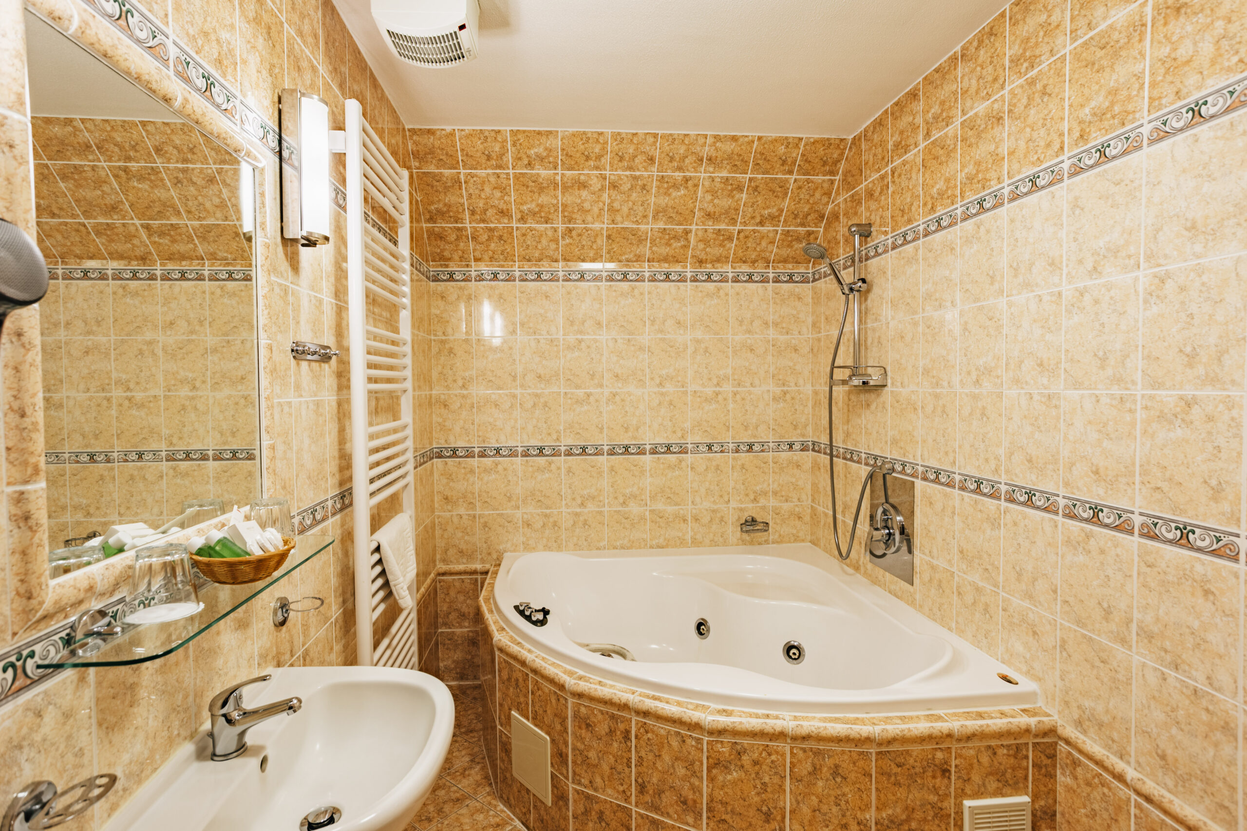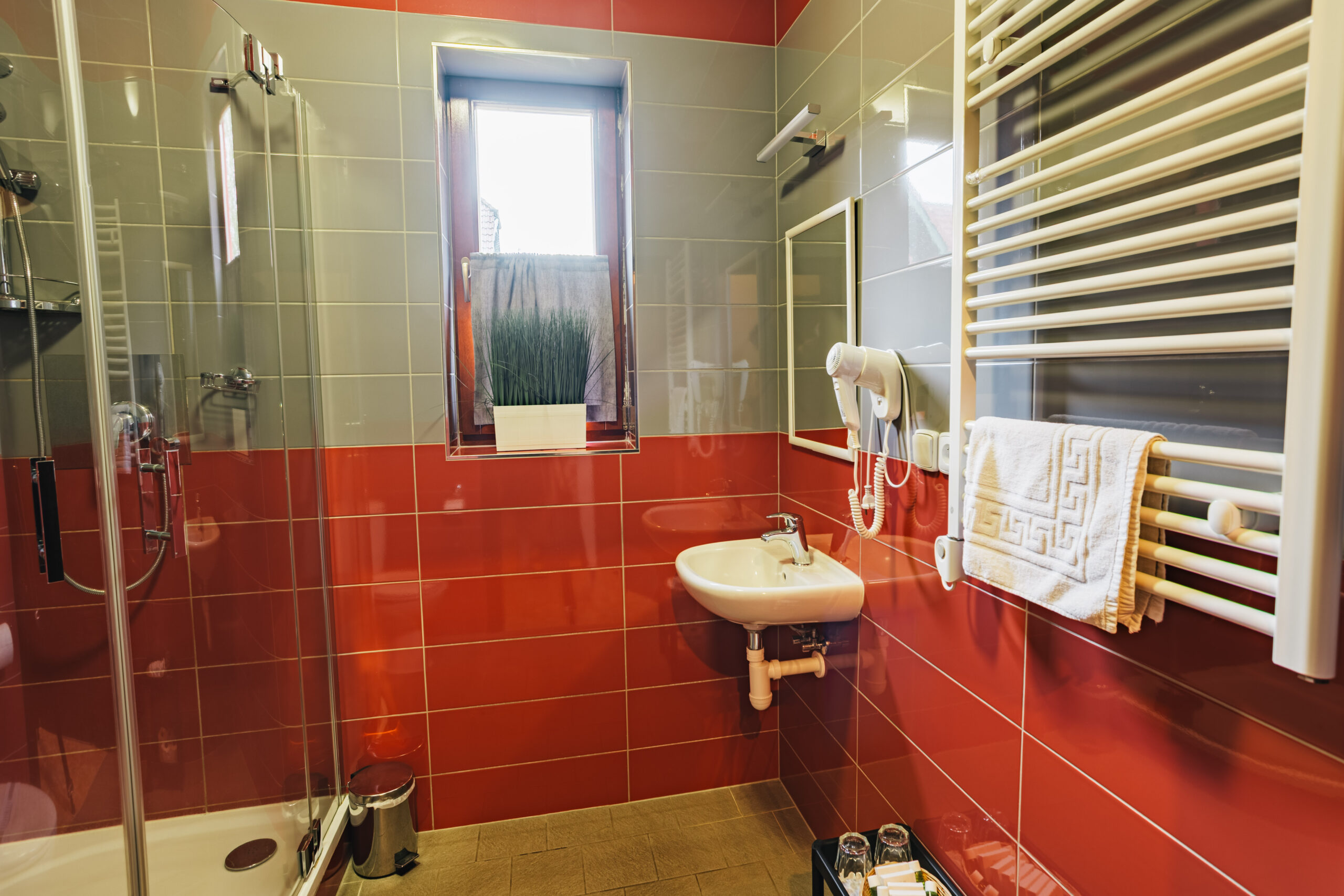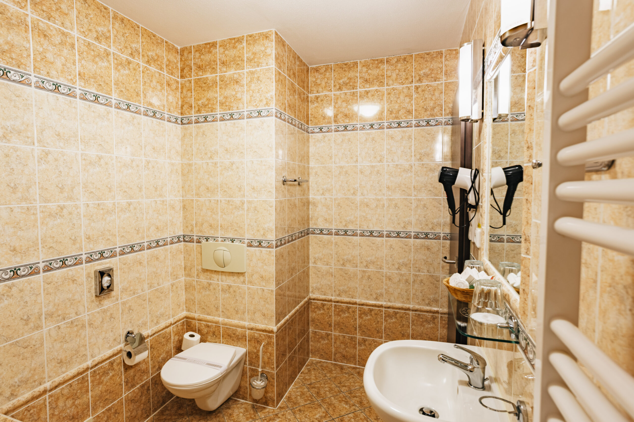 Každý pokoj má vlastní koupelnu se sociálním zařízením a moderním sprchovým koutem, některé pokoje jsou navíc vybaveny vanou pro ještě větší pohodlí a relaxaci.